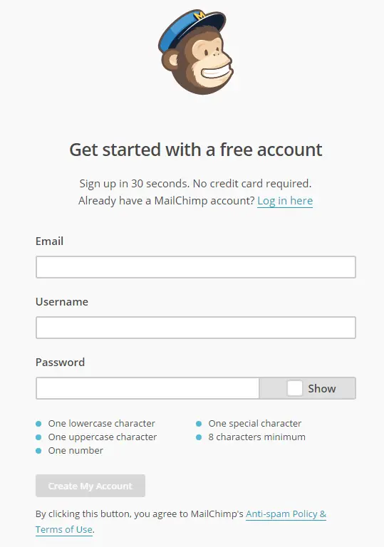 Sign Up For A Free* MailChimp Account